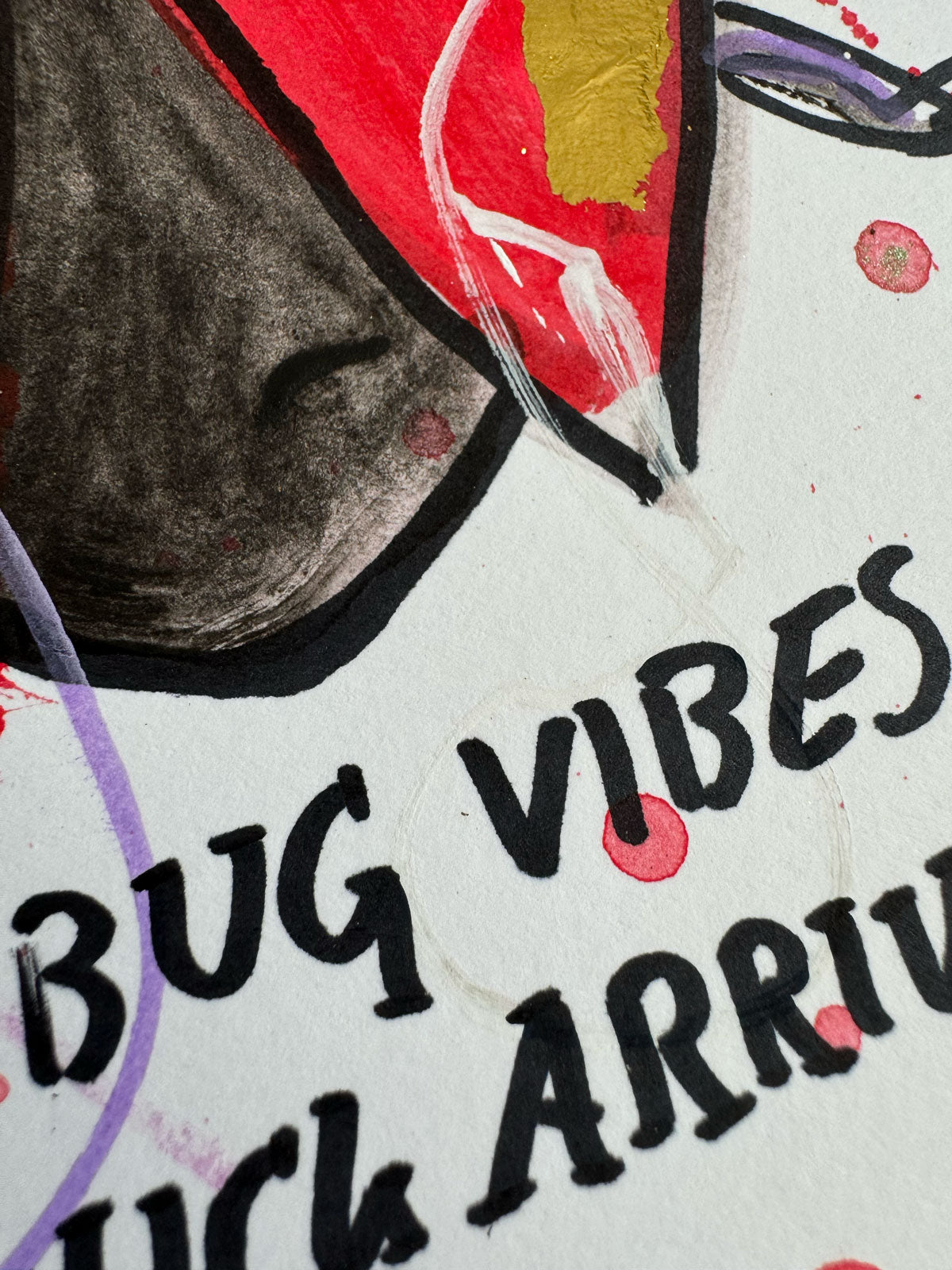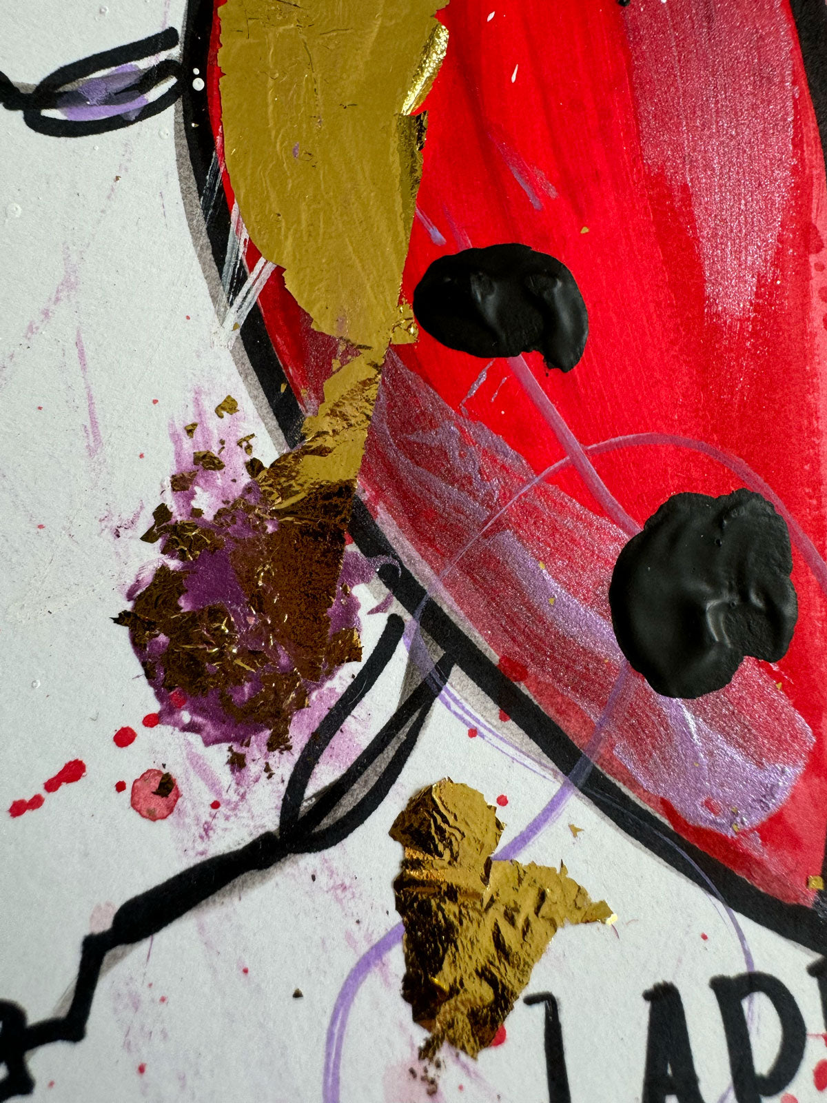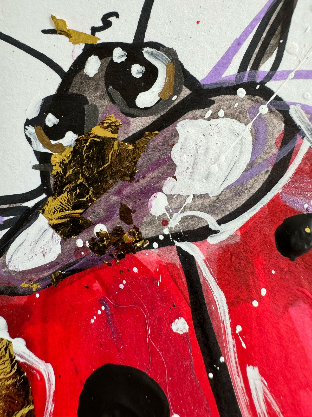 Acryl, Marker und Blattgold auf Papier.
