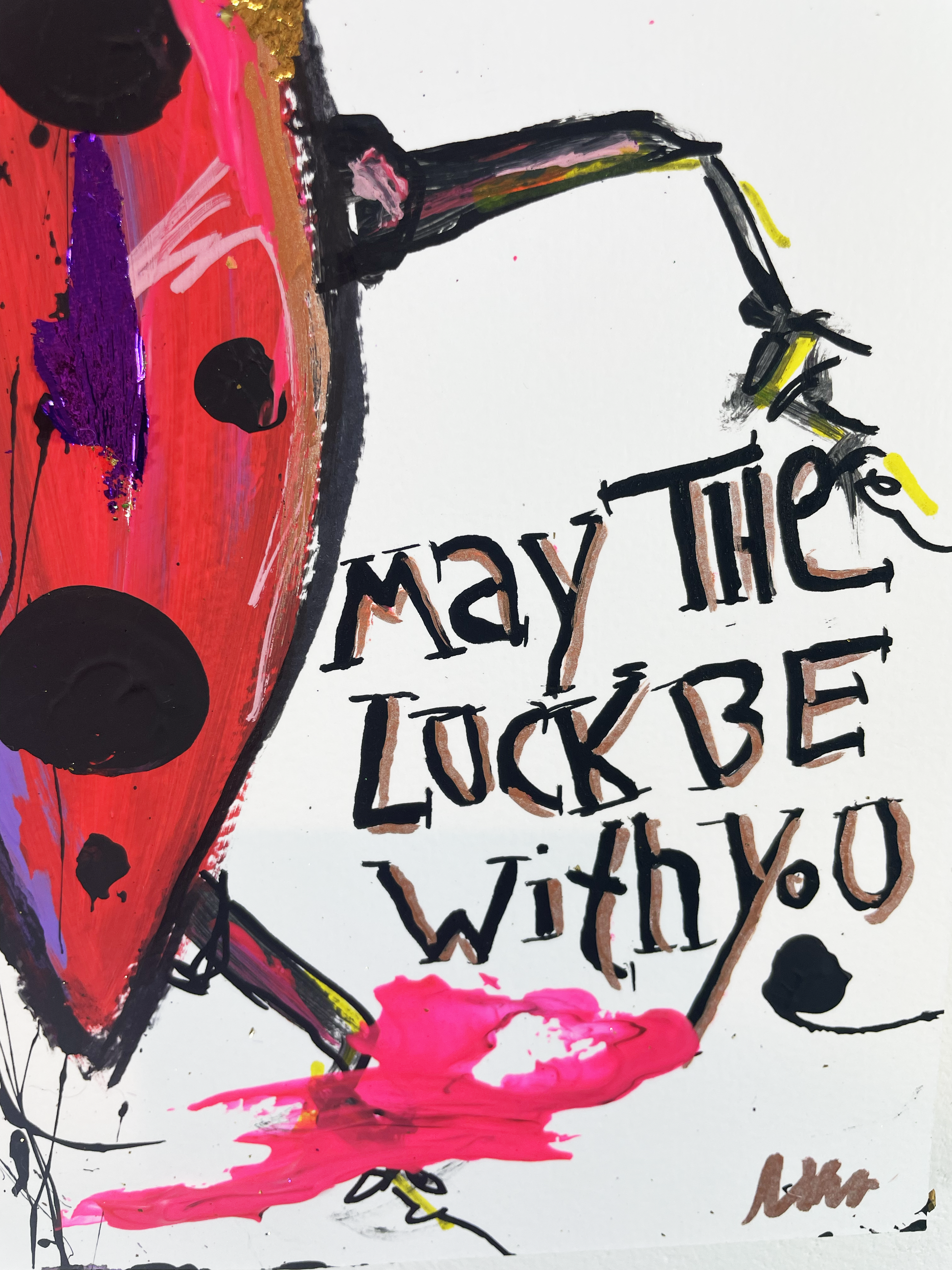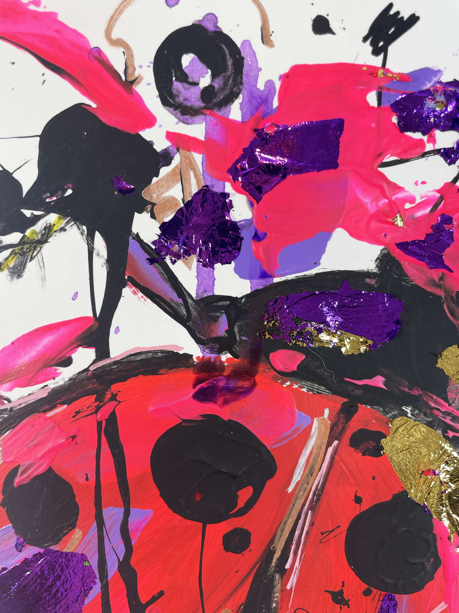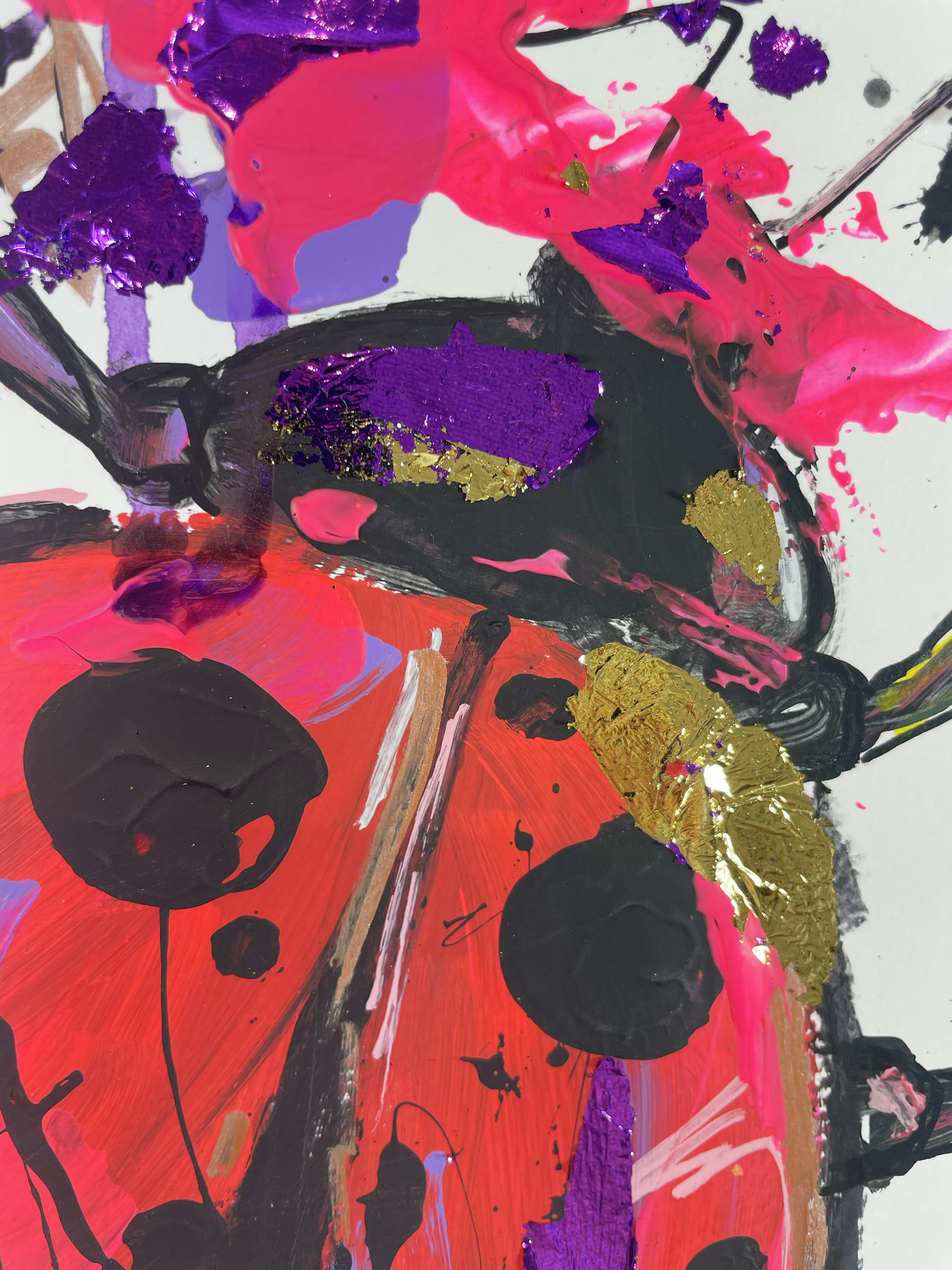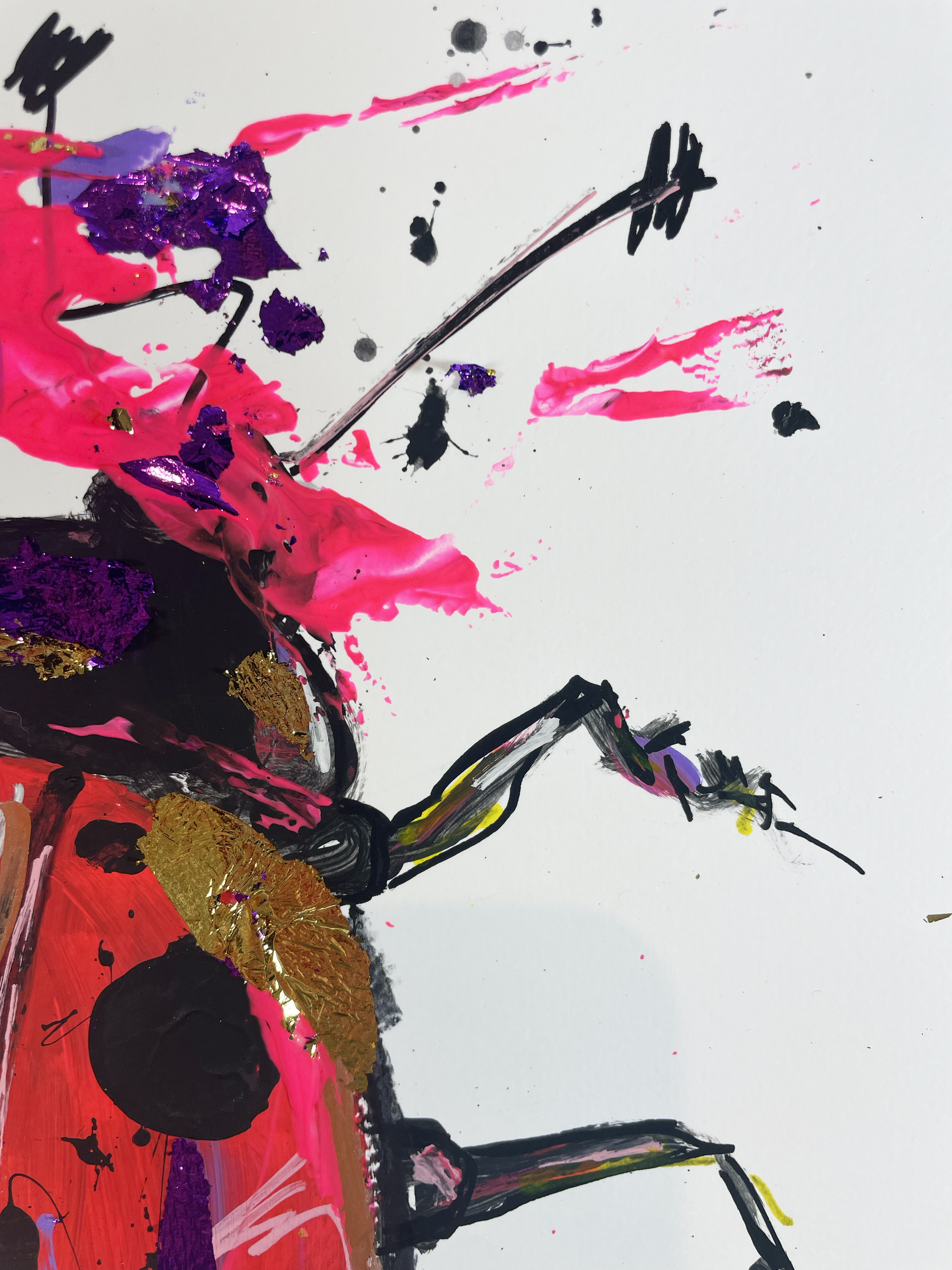 Acryl, Marker und Blattgold auf Papier.